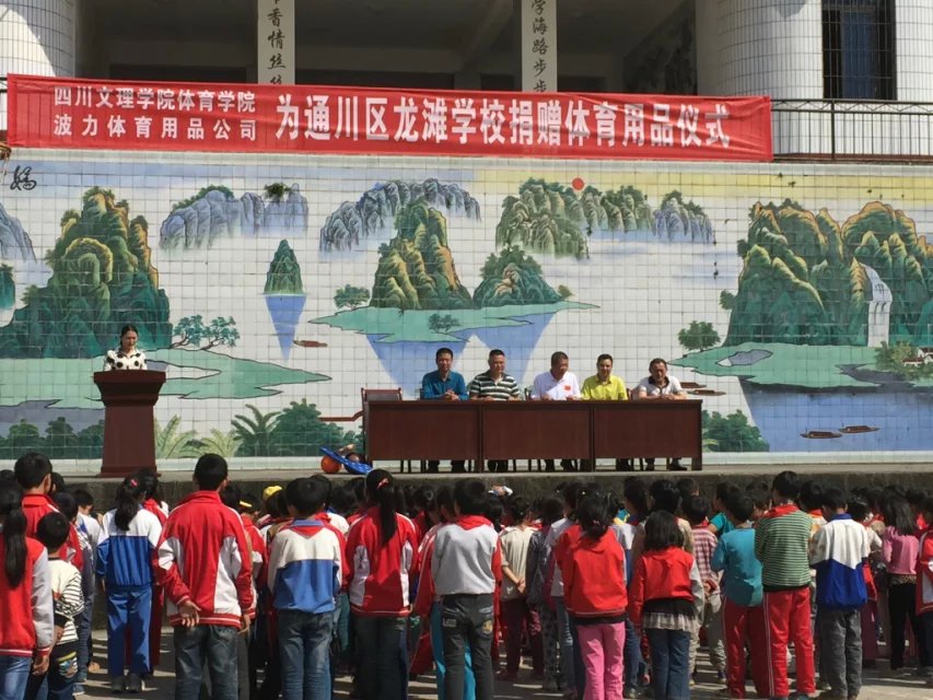 2015年10月15日上午,taptap联手达州市波力体育用品有限公司,向通川区龙滩乡中心校捐赠了一批体育器材。