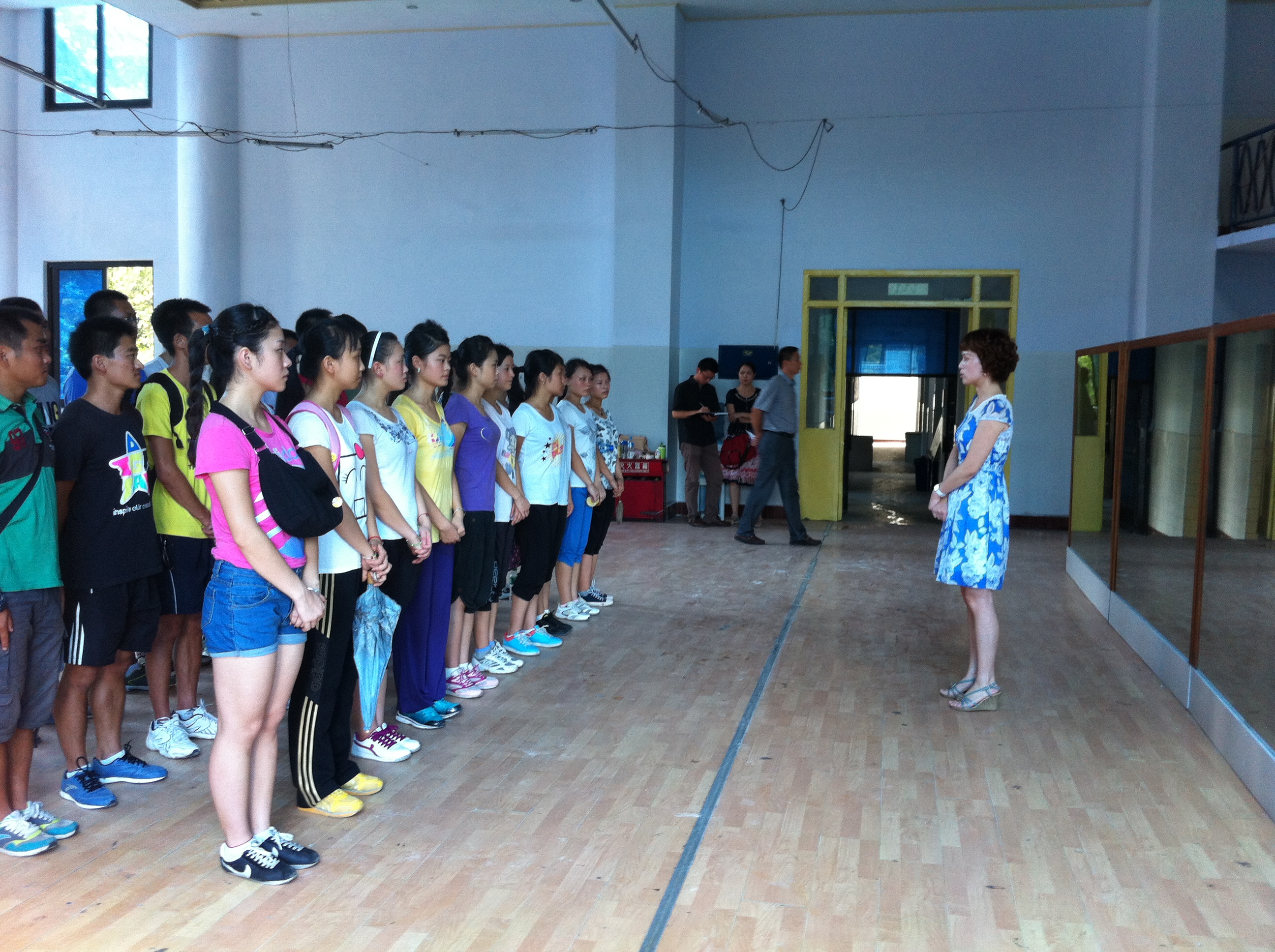 为了鼓励健美操运动员积极训练,能够以饱满的精神和充足的信心迎接201288举办的达州市第九套广播操比赛,学院于731日上午10时,在南坝校区2教楼练功房召开赛前动员大会。本次会议由体育系辅导员李霞教师主持,与会人员有体育系党总支佘涛书记、学工部毛玲副处长、冉卫东教练等数名教师,以及36名健美操队参赛队员。