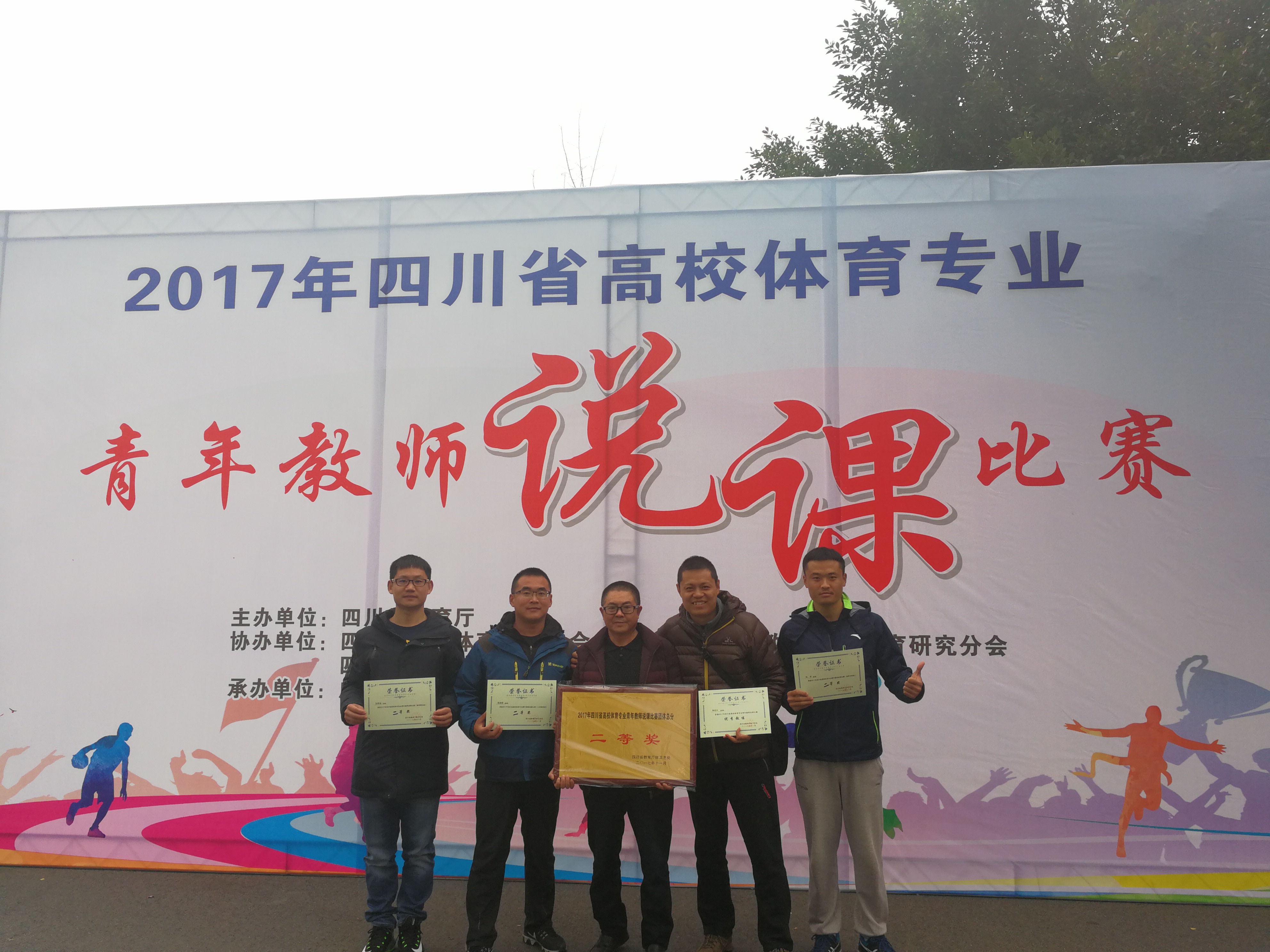 20171123日至25日,2017年四川省高校体育专业青年教师说课比赛在成都师范学院举行。taptap三名青年教师刘宇、张岩松、马思远分别获得个人二等奖,团体获二等奖,成绩较以往有了重大突破。