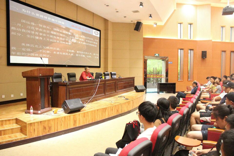 董立教授结合多年体育实践经历和丰富的人生经验为大学生爱上体育、终身体育指明了方向、坚定了信心,让在座师生受益匪浅。