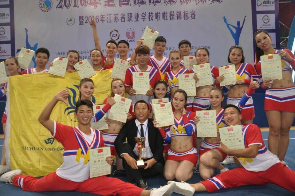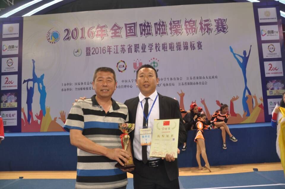 5月19日至23日,“2016年全国啦啦操锦标赛暨2016年江苏省职业学校啦啦操锦标赛”在江苏溧阳奥体国际花园体育馆隆重举行。taptap36名学生在董立院长和唐绪明老师的带领下参加了比赛,并在两个比赛项目中荣获了第一名。