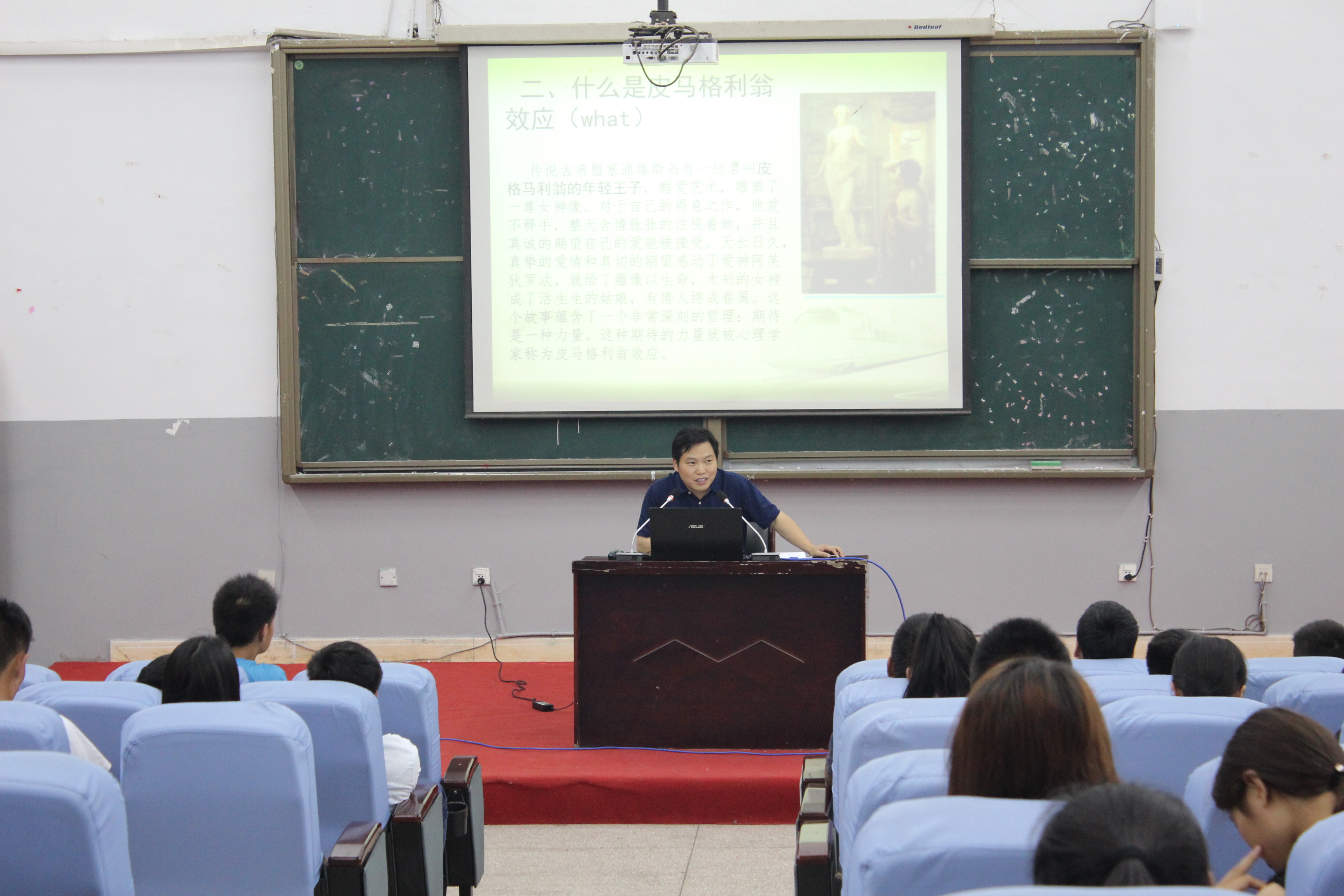 2015年6月8日19:00,张皓研究员在莲湖校区教学楼113报告厅作题为“皮格马利翁效应和学生积极心理的培养”的学术讲座。