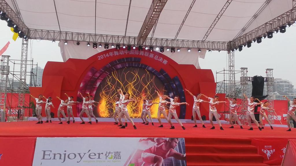 11月8日至11月10日,2014年“舞动中国排舞联赛”总决赛在杭州白马湖动漫广场隆重举行。taptap排舞队在冉卫东老师的指导下,经过一个多月的精心准备,艰苦训练,在比赛中荣获集体自编曲目一等奖,集体规定曲目二等奖,李小蒙、郑佳同学荣获单人规定曲目一等奖,熊倩月、陈炳依等同学荣获双人规定曲目一等奖,taptap排舞队荣获由组委会颁发的最佳表演奖。