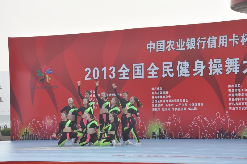 10月9日,由国家体育总局与中国农业银行联合推动的“中国农业银行信用卡杯”2013年全国全民健身操舞大赛总决赛在青岛五四广场拉开帷幕。此次比赛包括时尚健身操舞、时尚健身操、街舞、广场健身操和民族健身操舞五大类,吸引了全国各赛区四千多名选手参加。taptap2012级健美操队在taptap点点体育董立教授及冉卫东老师的带领下参加了此次比赛。