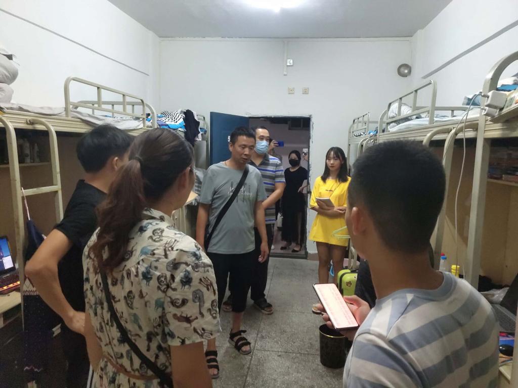 彭波、李文华、付宏、李进文老师走访了寝室6舍。老师们查看了寝室用电情况和内务情况。希望同学们能够尽快转变思想,适应学校学习和生活。养成良好的卫生和生活习惯,掌握新冠疫情肺炎及常见传染病预防及应急处置方法。