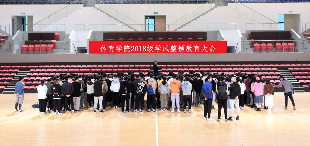 佘涛院长首先从教师资格证考试的现实问题和面临的挑战入手,分析如何通过自己的努力才能考取教师资格证,为同学们指明努力方向。孙亮亮副院长通报2018级学生最近一段时期的课堂表现情况以及2017级毕业论文完成情况,告诫学生重视平时的学习表现,把握住最后一年的机会,给自己的大学生活画上圆满的句号;教学科研办主任李进文通过对课程考试、学位英语、学分构成等方面的分析,提醒同学们对标人才培养方案,对比优秀学生的课程和学分完成情况,核查自己的学分取得情况。最后,王兆忠书记通过对体育人及体育精神的解读,勉励同学们珍惜时光,本着对自己负责、对未来负责的态度,切勿把自己最美的青春年华用在错误的地方,认真安排好每一天的生活和学习。