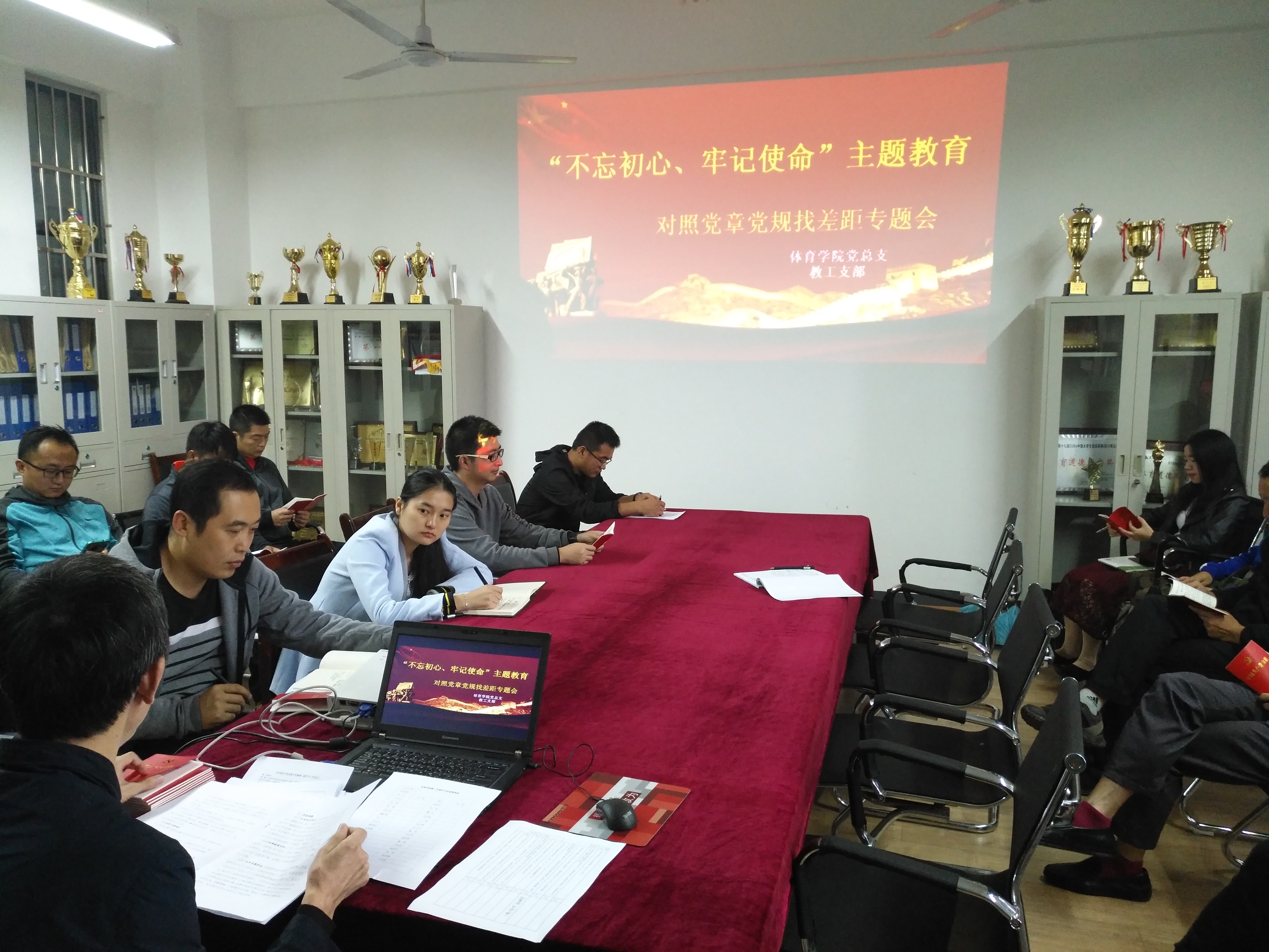 10月11日下午16:00,taptap点点体育教工支部在3019会议室召开“不忘初心、牢记使命”主题教育对照党章党规找差距专题会议。会议由学院党总支书记王兆忠主持,全体教师党员参加了会议。