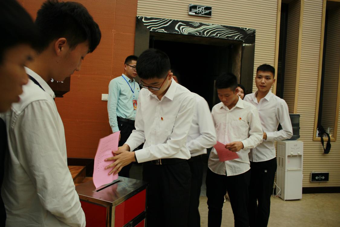 18:00由团总支副书记赵碧磊主持了大会的正式会议。学院党总支佘涛书记宣布开幕,大会在慷慨激昂的国歌声中正式开始。首先,进行了本届团学干部的见面会,颁发了上一届学生干部的聘书。会上,团总支副书记赵碧磊、学生会主席周舰分别作了工作报告,他们分别对新一届团总支学生会的发展提出了新的建议。随后进行了新一届团总支学生会学生干部的选举。会上还审议通过了《taptap点点体育量化考核实施细则(2017修订版)》、《taptap点点体育团总支学生会章程(2017修订版)》、院训、院徽。