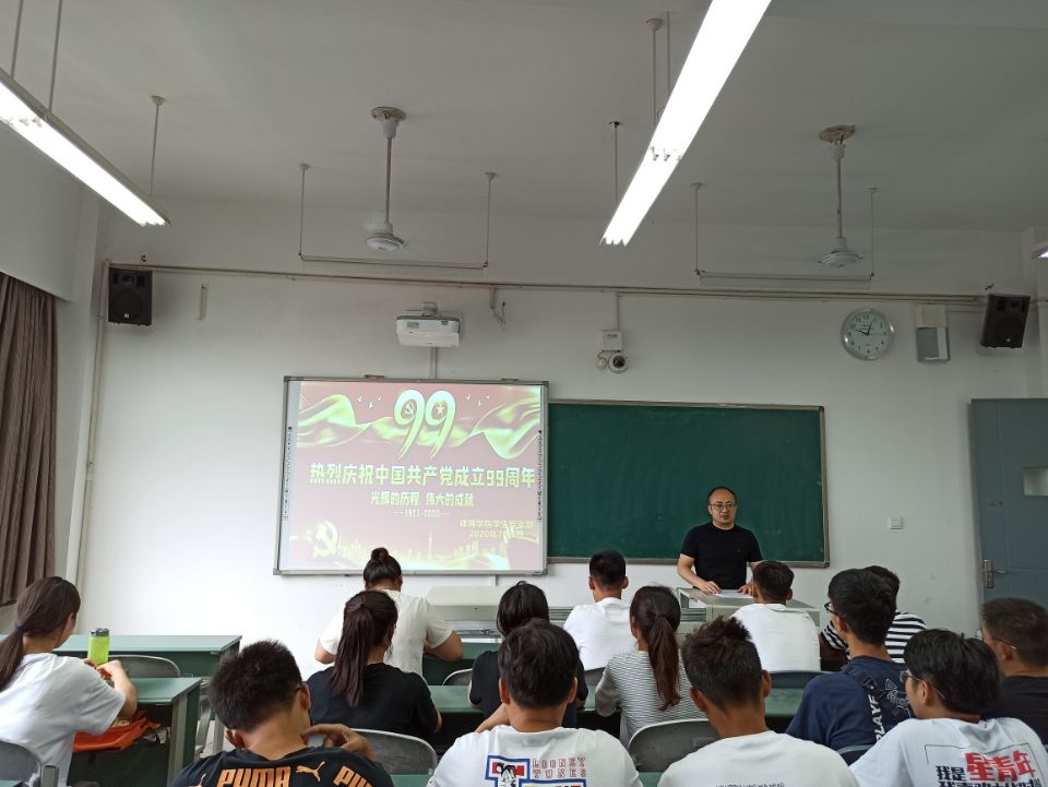 为庆祝中国共产党成立99周年,回顾党的光辉历程,讴歌党的丰功伟绩,继承和发扬党的光荣传统和优良作风,弘扬主旋律,传递正能量,taptap点点体育学生党支部于7月1日下午在艺术传媒楼4019开展了庆祝建党99周年主题活动。学院党总支副书记、学生党支部书记彭波,团总支书记祝利平,专职辅导员石姣娜、全体学生党员参加了活动。