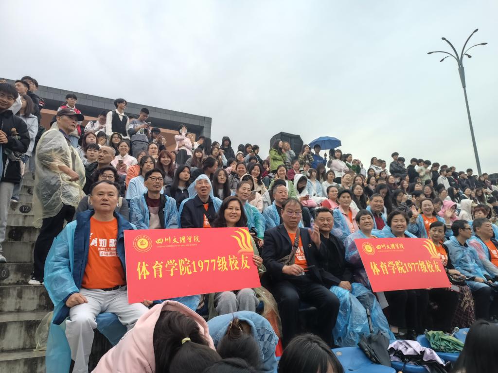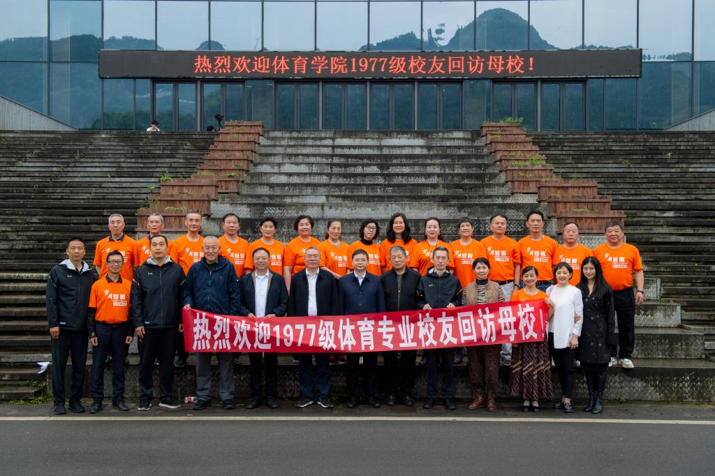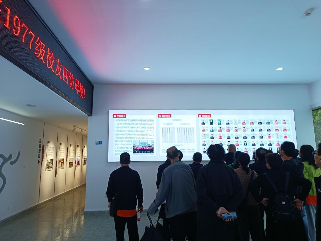 这次1977级师生荣访母校,恰逢学校第十四届田径运动会盛大开幕,他们应邀出席了运动会开幕式,邓朝胜等三位前辈特邀在主席台观礼。开幕式结束后,在校史馆和校友办工作人员的陪同下,他们参观了校史陈列馆、新校区和老校区。