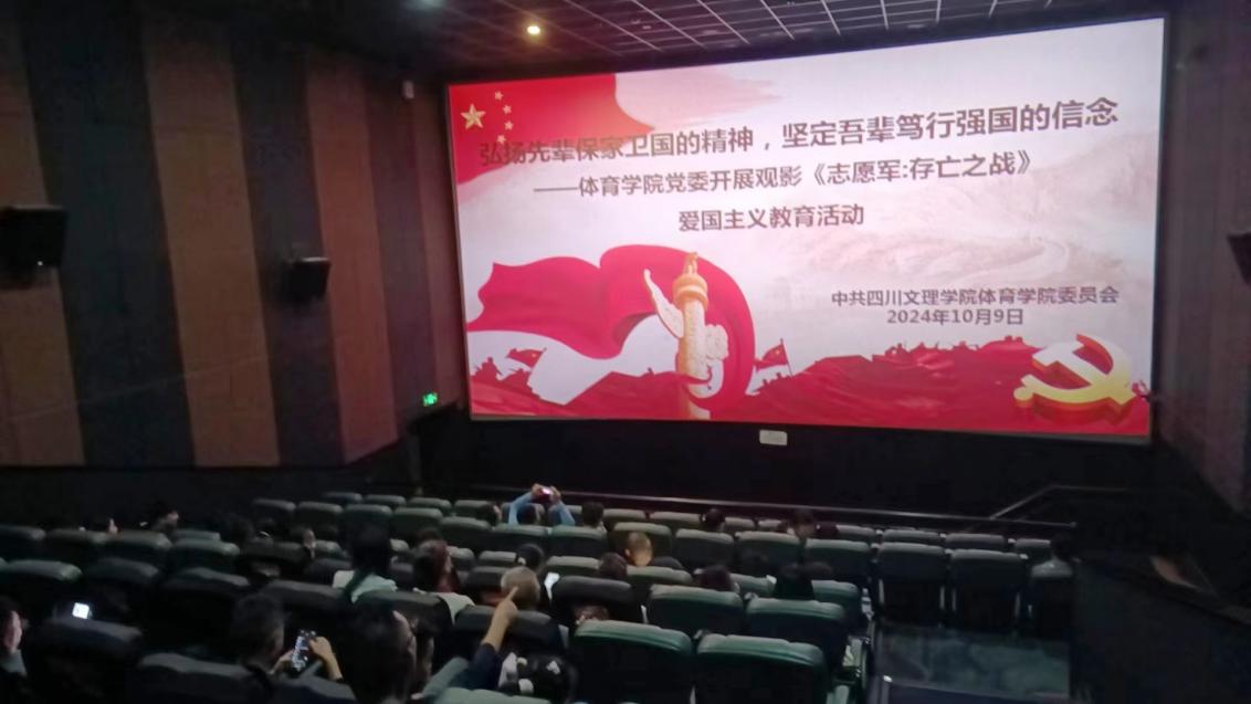 为深入学习贯彻党的二十届三中全会精神,庆祝中华人民共和国成立75周年,引导taptap师生缅怀革命先辈,弘扬爱国主义精神,汇聚干事创业的力量,2024109日,taptap点点体育党委举办了以“弘扬先辈保家卫国的精神,坚定吾辈笃行强国的信念”为主题的爱国主义教育活动,组织学院全体教职工及部分学生党员代表观看了红色影片《志愿军:存亡之战》,一起重温那段荡气回肠的烽火岁月,致敬不朽的人民英雄。