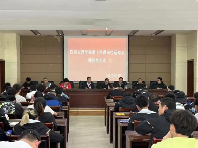 202448日在弘德楼会议室召开了四川文理学院第十四届田径运动会裁判工作会议,本次会议的参与人员有技术官员王兆忠,技术代表佘涛、罗小兵,赛事主管杨明、赛事主管助理张超、李珂瀚,径赛裁判长敬文、田赛裁判长付宏以及各个岗位的主裁判、裁判员等。