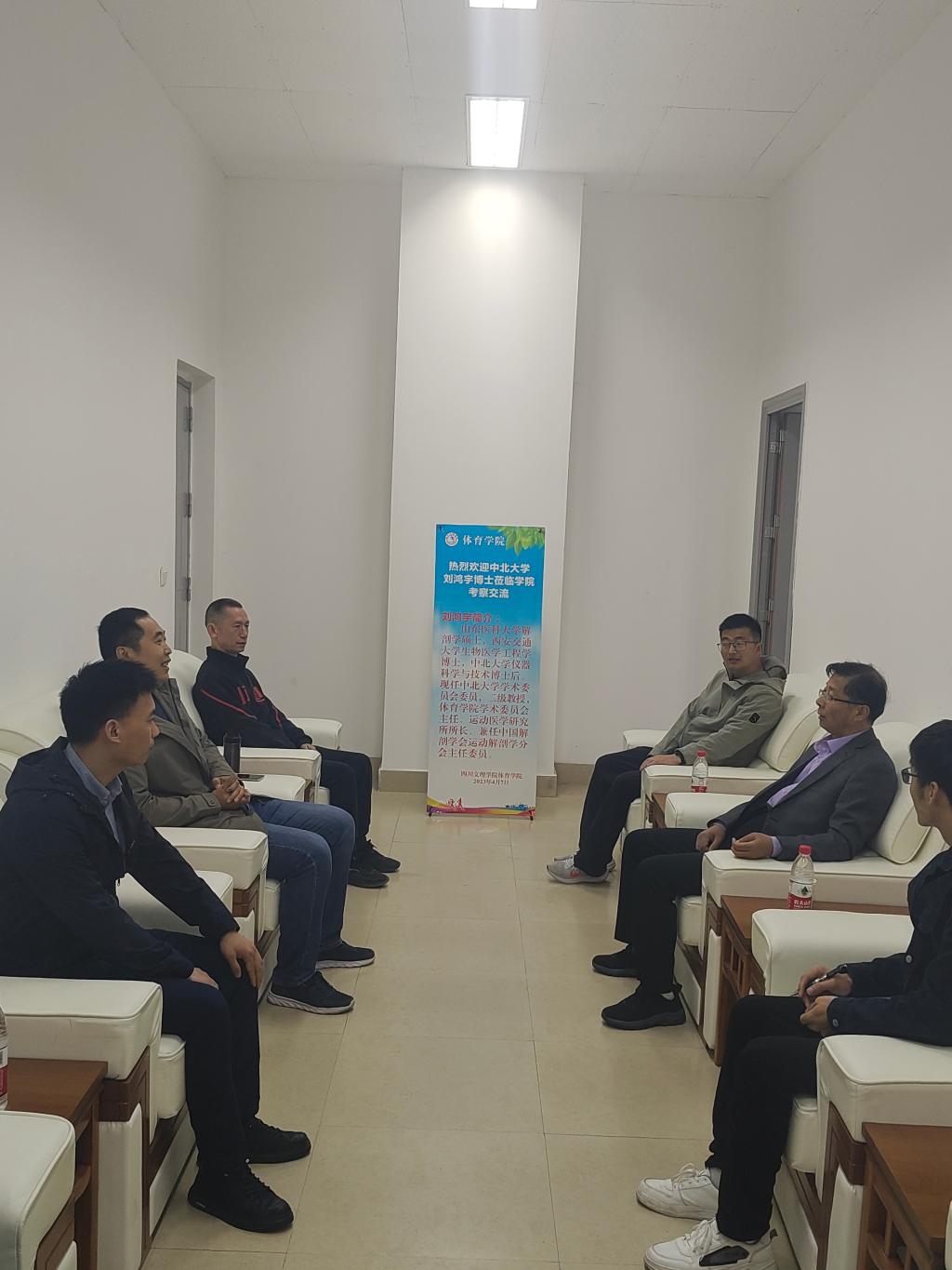 48日,中北大学运动医学研究所所长、二级教授,中国解剖学会运动解剖学分会主任委员刘鸿宇教授一行,来taptap进行交流。学院党委书记王兆忠、副院长孙亮亮、副书记靳浪陪同,王茂、盛佳智和周剑三位老师参与交流。双方就实验室建设、学科发展、人才培养、本科生毕业论文的写作及规范化等方面进行了深入的交流。