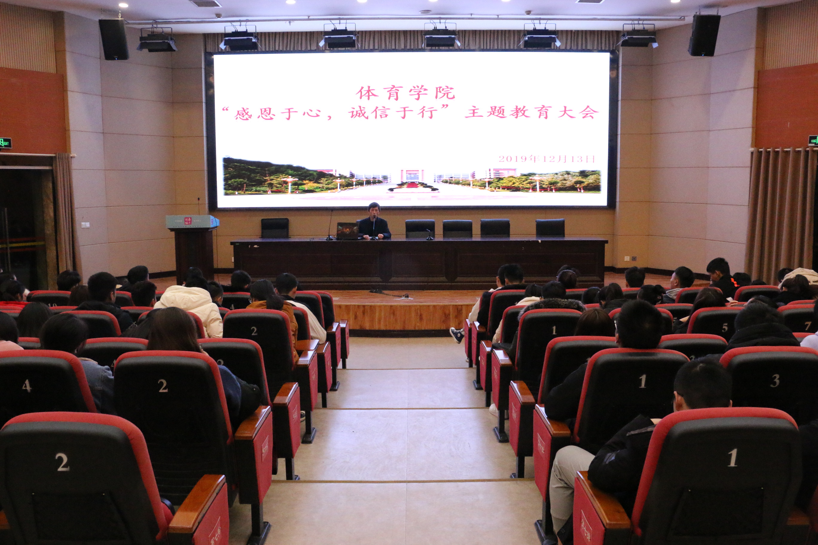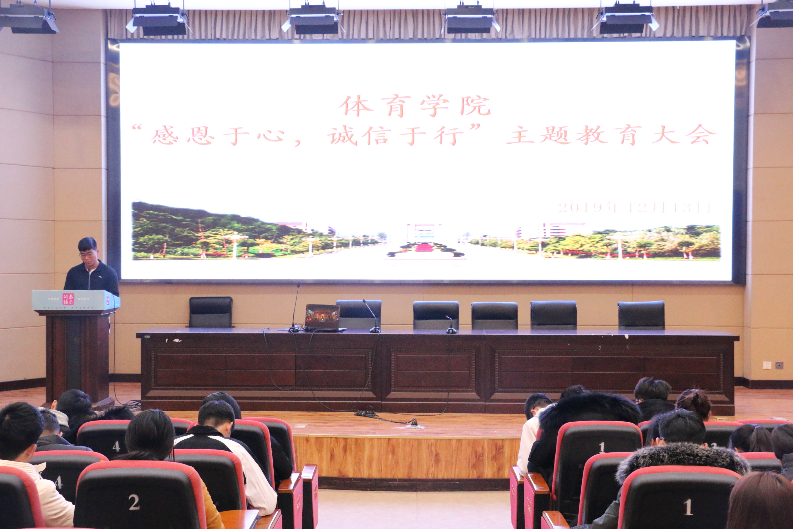 2019121317:30,在学术报告厅A厅召开taptap点点体育召开2019年学生“感恩于心,诚信于行”教育大会。党总支书记王兆忠、院长佘涛、党总支副书记彭波、学工办主任祝利平、辅导员石姣娜以及taptap点点体育修业班全体学生参加了会议。