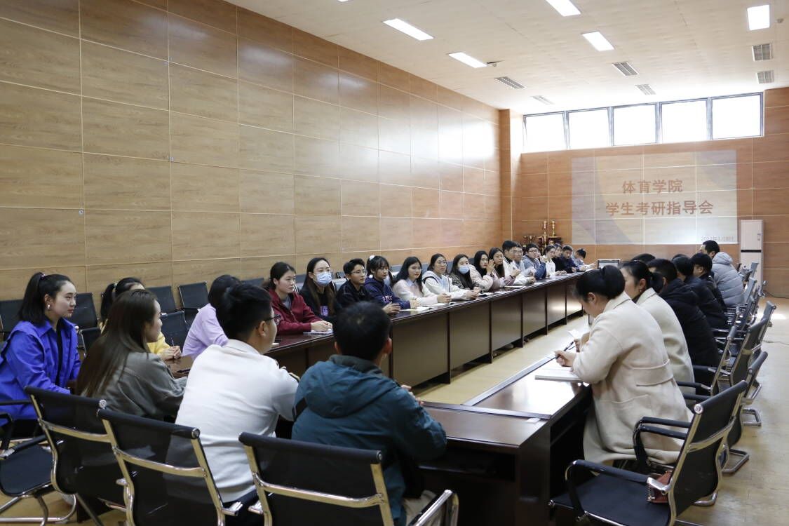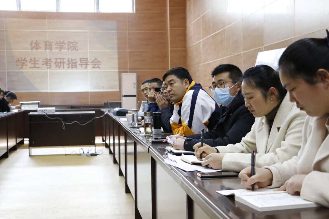 38日,taptap点点体育在体育馆附馆105召开考研学生指导会。体育学院院长佘涛,党总支副书记彭波,副院长孙亮亮,组织员卫洪春,党政办公室主任樊永强,学工办主任祝利平,专任教师盛佳智,辅导员石姣娜以及22位考研学生参加了本次座谈会。会议由祝利平主持。