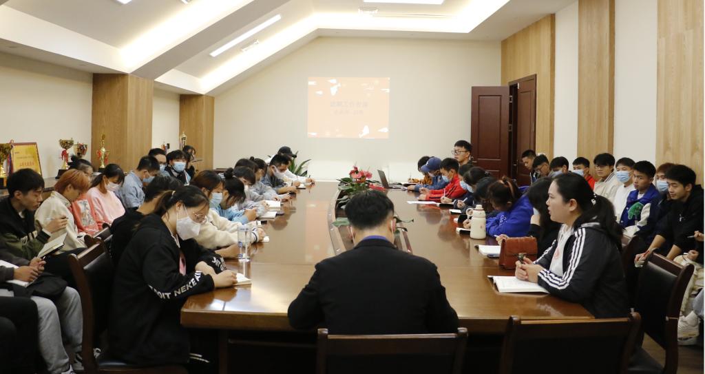 会上,石姣娜和闫青就近期相关工作进行了安排。学生干部代表何欣洲作了发言,他回顾了上学期团总支学生会的工作,提出了存在的问题和不足,同时还对本学期的工作进行表态,希望学生干部们进一步明确自己加入团总支学生会的初心,不断提升自己,使团总支学生会工作再上新台阶。靳浪对会议做了总结,他对前面两位老师所作的近期工作的一些注意事项和重点进行了强调,并提出了几点要求:第一,学生干部要迅速进入状态,迎接新学期的工作;第二,在完成既定工作的同时,要积极主动思考,提升工作能力,创新工作方法;第三,所有学生干部要齐心协力,共同打造优质团队。他希望学生干部明确努力方向——开口能说,说得精彩;提笔能写,写得深刻;遇事能办,办得漂亮;是非能辩,辩得清楚。