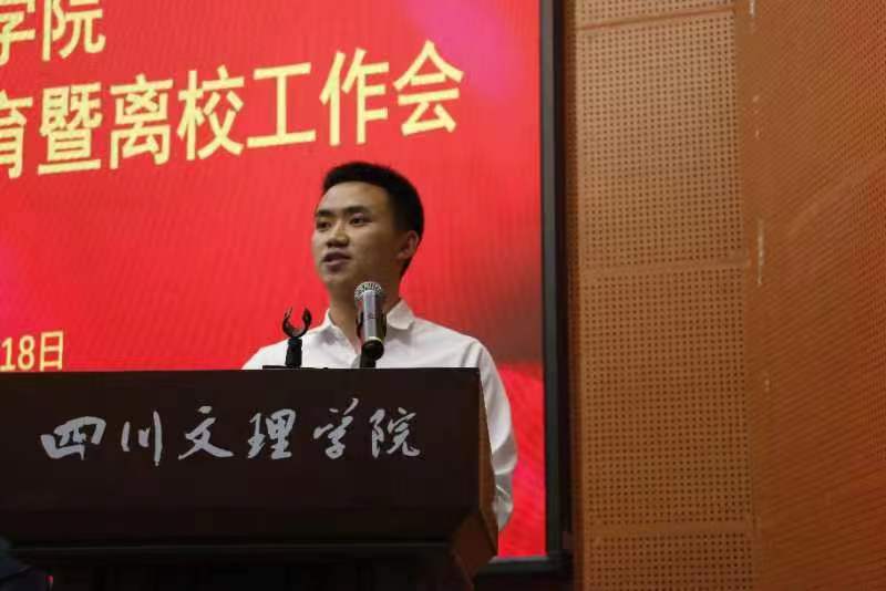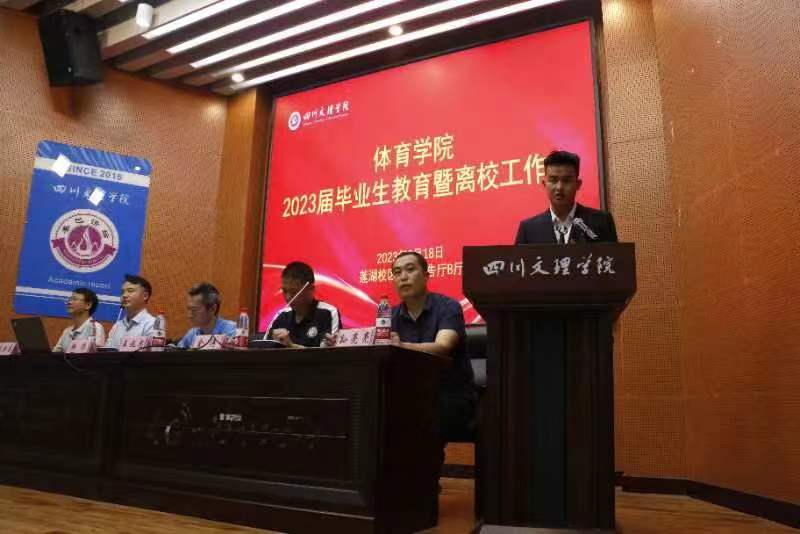会上,毕业生代表何木金和修业班代表陈佳林作了发言。何木金表示感恩大学四年的经历与收获,今后将继续用积极乐观的心态去面对工作和生活,祝愿母校更辉煌。陈佳林表示,低年级学生应多向优秀的师兄师姐学习,祝愿师兄师姐在以后的学习和生活中,实现自我价值,一帆风顺。团总支书记祝利平、辅导员闫青对团组织关系转接和毕业生鉴定工作进行了安排。院长佘涛、副院长孙亮亮和组织员卫洪春对毕业生进行赠言,他们希望同学们牢记文理人的身份,牢记艰难困苦玉汝于成的文理精神,要保持体育人的一贯作风,坚守理想信念,为社会做出应有的贡献。最后,党委书记王兆忠作了讲话,他充分肯定了2023届毕业生们在过去四年里所取得的进步和成绩,他希望同学们把过去的经验和教训分别转化为明天事业发展中的催化剂和清醒剂,在新的人生道路上踔厉奋发,捷报频传。