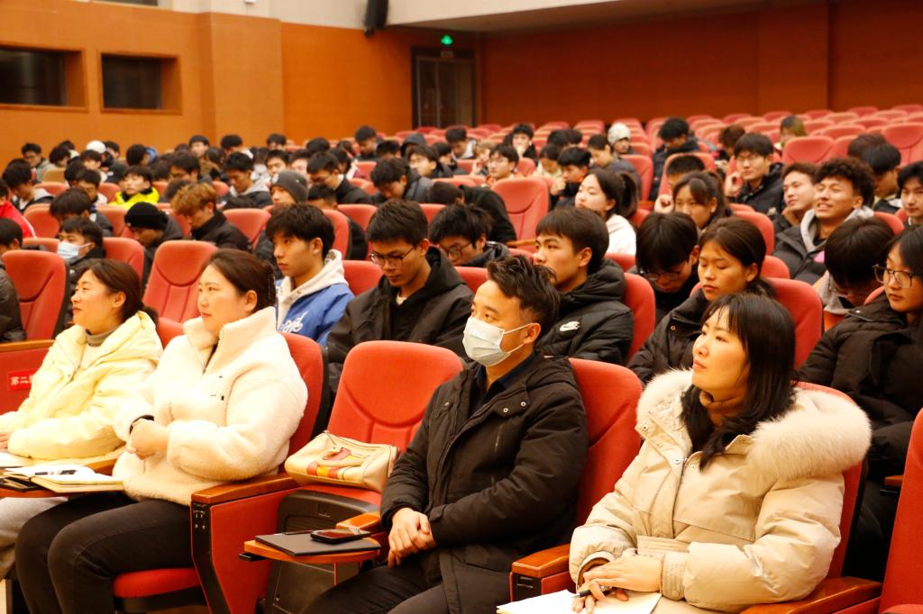 20231225日晚19:00,taptap点点体育在学术报告A厅开展了第七场2023级新生入学教育讲座。学院党委书记王兆忠,党委副书记靳浪,学工办主任祝利平,辅导员石姣娜、李波、刘方芳及2023级全体新生参与本次讲座。王兆忠担任主讲。