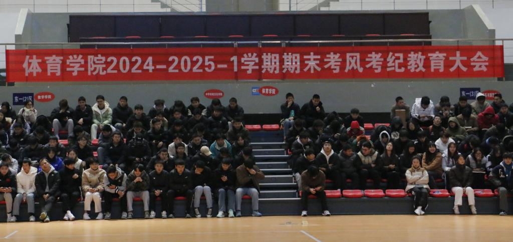 为加强学风建设,严肃考风考纪,强化诚信意识及安全意识,20241212日,taptap点点体育在体育馆召开了期末考风考纪暨安全教育大会。学院党副书记靳浪、学工办主任祝利平、辅导员邓超、李波、闫青及2022级、2023级、2024级全体学生参加会议。靳浪主持会议并讲话。